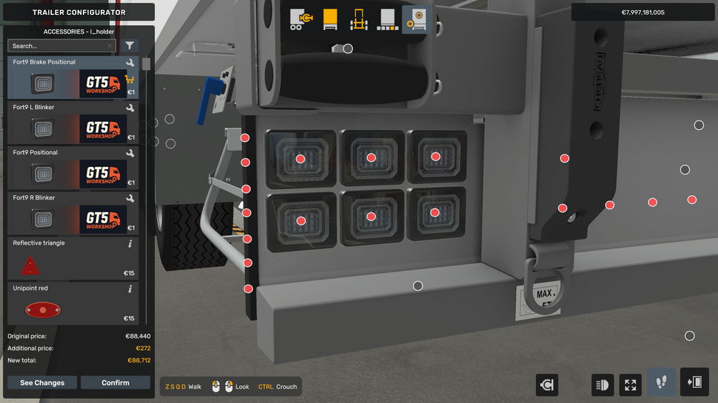 LED Tail Lights for Euro Truck Simulator 2 with brake, parking, and indicator functions.